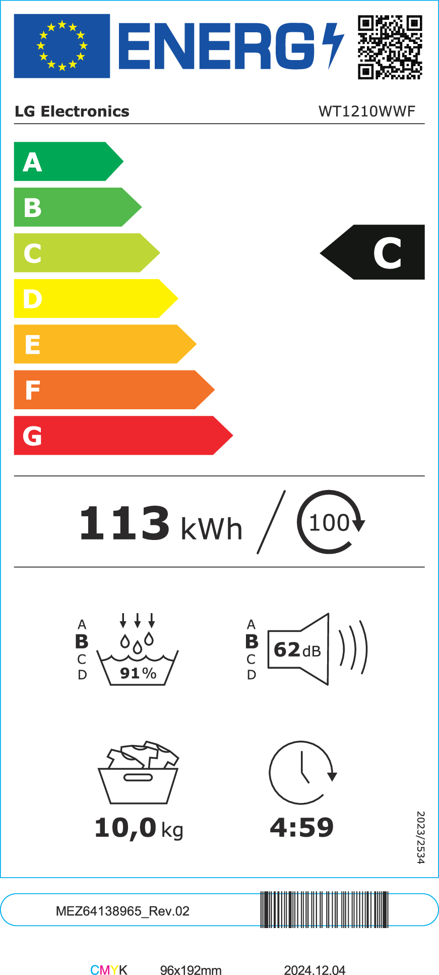 LG WT1210WWF veļas žāvētājs Brīvi novietots Ielādēšana no priekšas Balts A