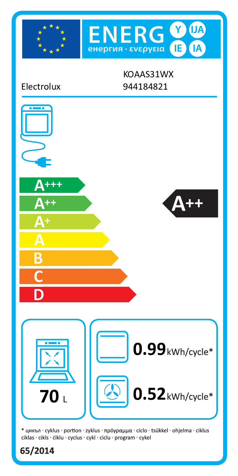 Electrolux KOAAS31WX 70 L 3500 W Melns