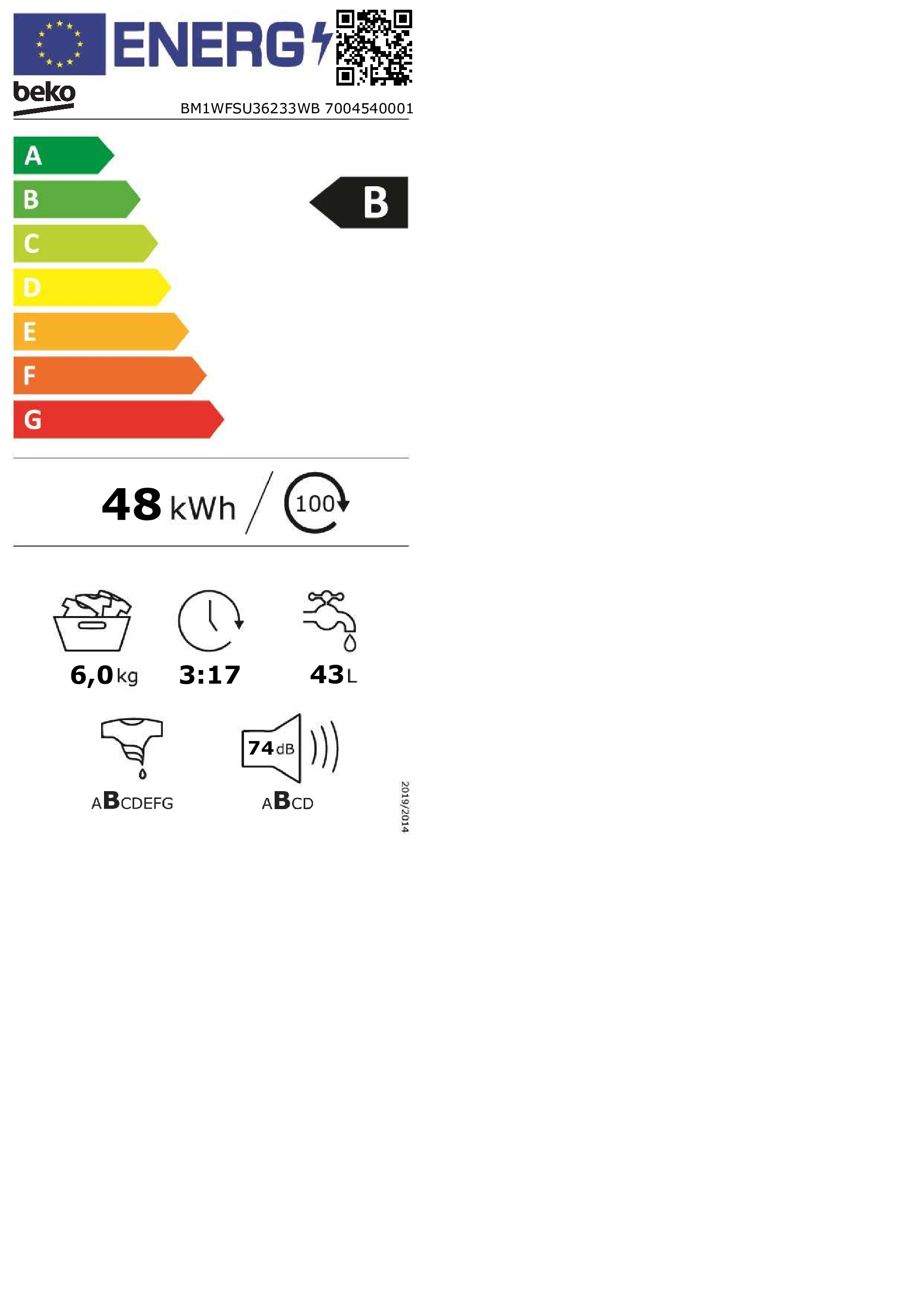 Enerģijas patēriņš 100 ciklos: 48 kWh