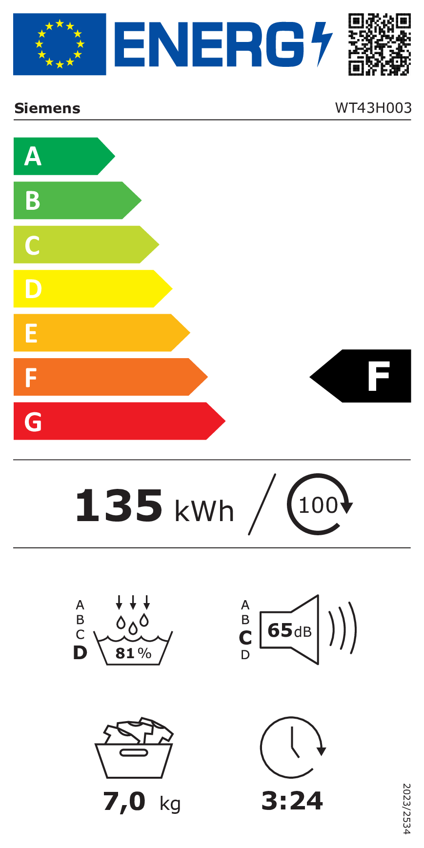 Siemens iQ300 WT43H003 veļas žāvētājs Brīvi stāvošs priekšpuse 7 kg A+ Balts